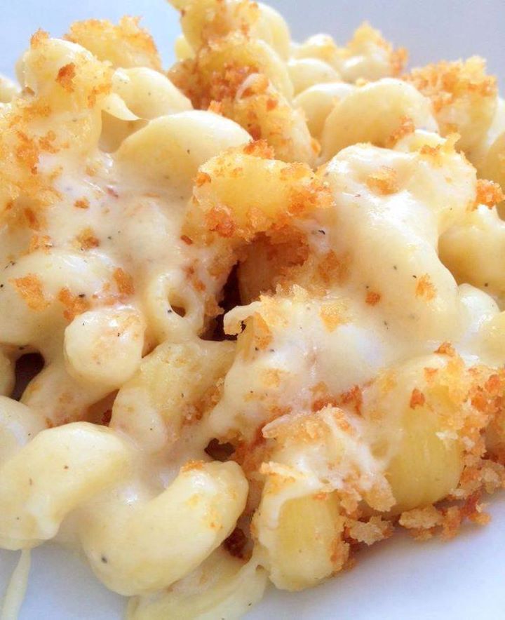 Melt 2 T. butter over medium heat. Add in panko bread crumbs, stirring constantly 3-5 minutes or until golden brown. Pour over the mac and cheese.