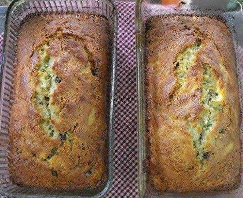 Blend together eggs, sugar and oil before gradually mixing in other ingredients while beating vigorously. Bake at 350 degrees Fahrenheit in two oiled and floured loaf pans for approximately one hour for best results.