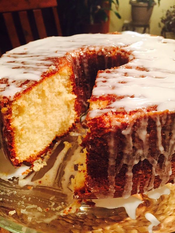 In medium bowl, mix powdered sugar with lemon and lime juices and 7–UP, blending everything well. Drizzle half the glaze over the cake when it is completely cooled; let glaze set. Then, if desired, drizzle a second glaze over the cake and let set. Cut into slices and serve.