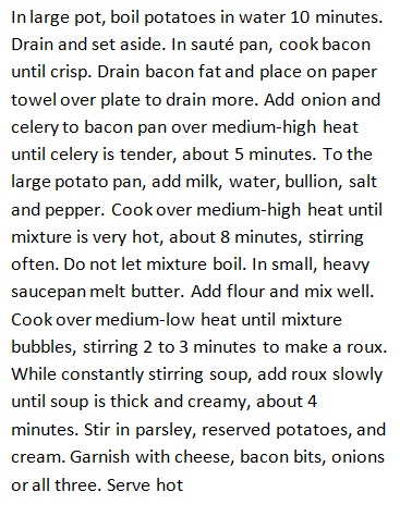 4 chicken bouillon cubes (use 1 cup of the hot potato water to dissolve, then use the 3 cups of water)