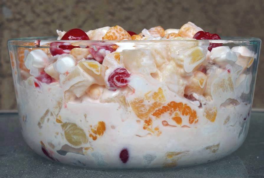 Ambrosia Fruit Salad is ready to serve.