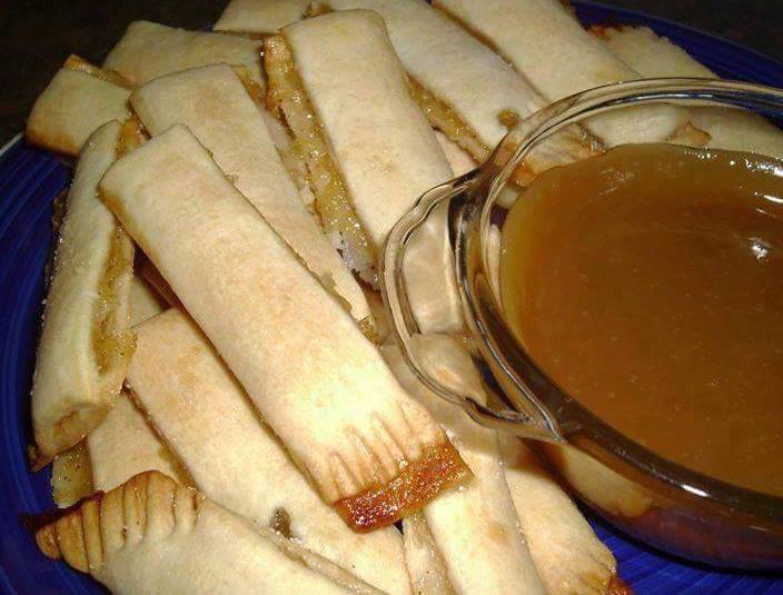 Puree the pie filling in a food processor, set aside. Roll out one of the pie dough, top all over with the pie filling. Roll out the other pie dough on top. Press down lightly and using a fork, pinch the outer edges together. Use a pizza cutter or crimping roller and roll into 1″ strips, then cut again the other way into fry size length. Place on lightly sprayed parchment paper, sprinkle with a little sugar and bake at 350 degrees for 20 minutes.