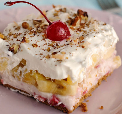 Beat cream cheese and remaining sugar with mixer until well blended. Spread carefully over crust; top with pineapple. Slice 4 bananas; arrange over pineapple.