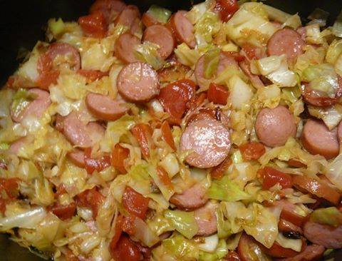 Melt butter in large skillet. Add cabbage, onion, and cook on medium high for about 5 minutes stirring to keep from sticking to pan. Add remaining ingredients, cover and simmer for 20 – 25 minutes.