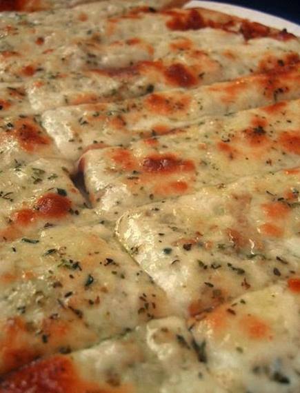 Shred the cheese and spread it over the dough then drizzle with some garlic flavored oil from the minced garlic.