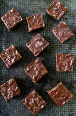 Line an 8 x 8-inch pan with parchment paper. Spread the chocolate mixture evenly into the pan.