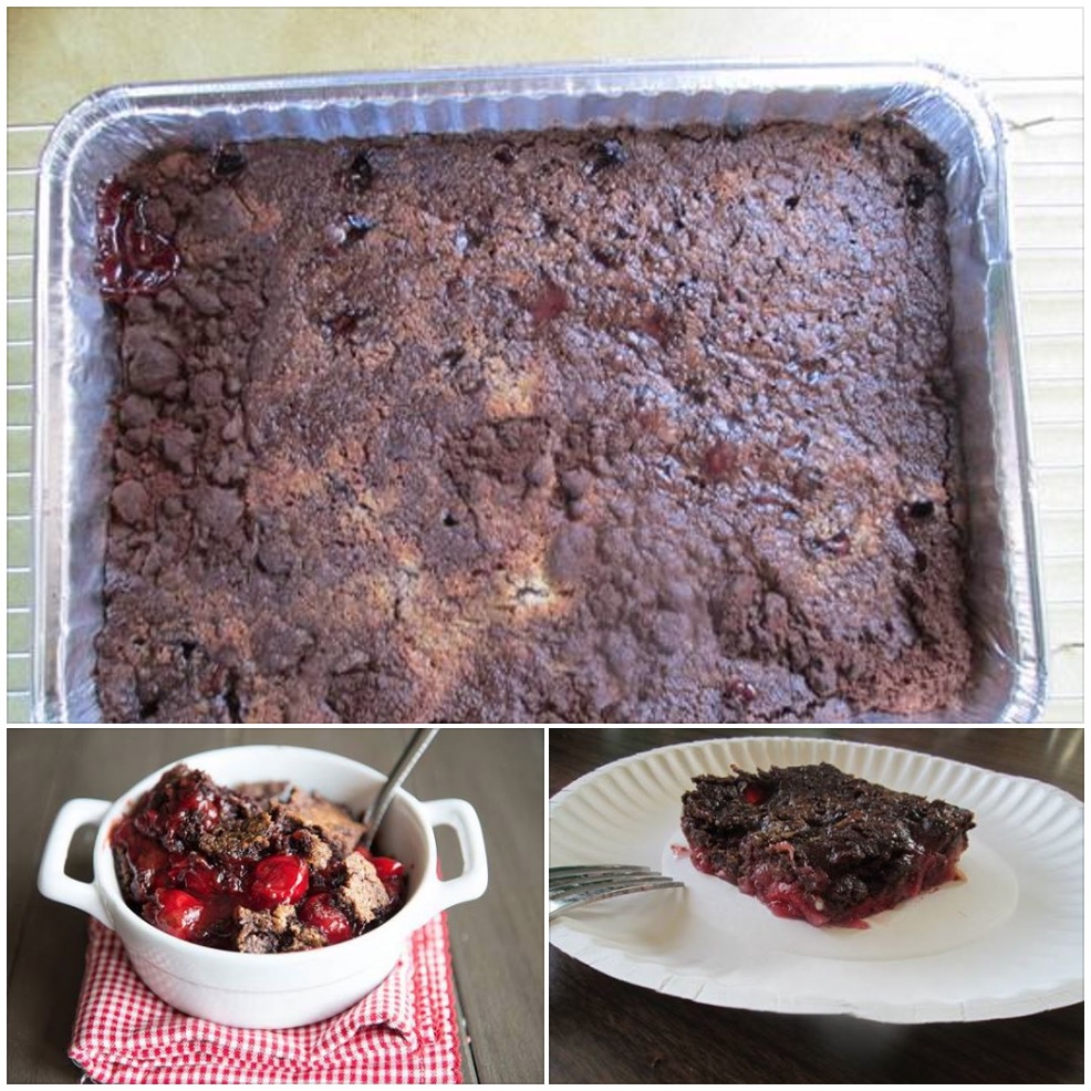 Dump cherry pie filling into 13 x 9 inch cake pan.