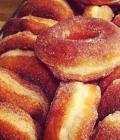 (5) Once all biscuits are looking like golden donuts and have cooled, dip each one in your melted better; let excess butter drip off of donut, then…Dip into your cinnamon sugar mix!