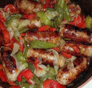 Cut the sausages into 4 to 6 pieces each, about 1-inch cubes. Add the sausage back to the pan and stir to combine. Cook until the sauce has thickened, about 20 minutes.