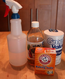 Mix dry ingredients first, then slowly add to wet as the vinegar and baking soda will react slightly. Put into spray bottle and spray pets down. Be careful not to get in pets eyes!