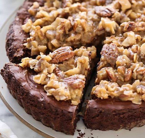 Top the brownie pie with the frosting. Remove from the tin and serve cake at room temperature.