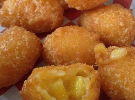 In a medium bowl, stir together the creamed corn and drained whole kernel corn. Line a baking sheet with aluminum foil, and coat with vegetable oil or cooking spray. Drop spoonfuls of the corn mixture onto the sheet, and freeze until firm, about 3 hours. Heat one inch of oil to 350 degrees F in a large deep skillet, or fill a deep-fryer with oil as directed by the manufacturer. Mix together the cornmeal, flour, egg white, milk, salt and pepper in a medium bowl. Dip frozen corn nuggets in the batter, and quickly fry in hot oil until golden brown. Remove to paper towels to drain.