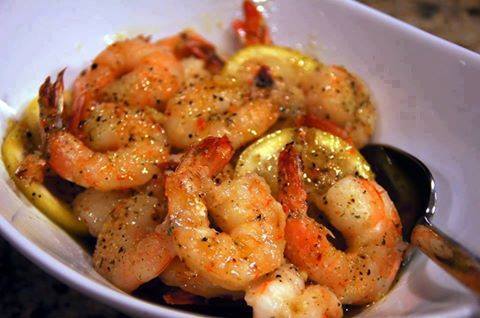 Arrange the cleaned and deveined shrimp on top of the lemon slices.