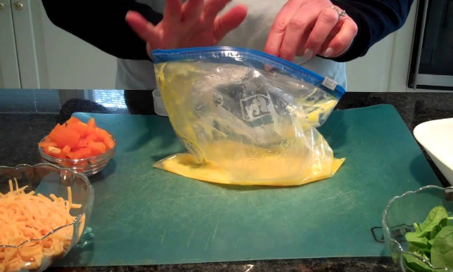 ½ cup of omelette fillings of your choice – sausage, bacon, onions, mushrooms, peppers, etc