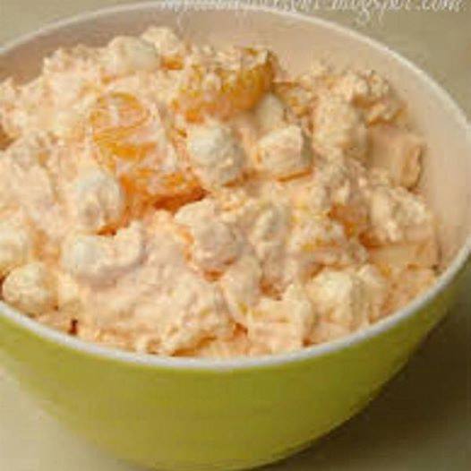 In a mixing bowl, combine the oranges, pineapple and gelatin. Mix well and chill for 1/2 an hour.