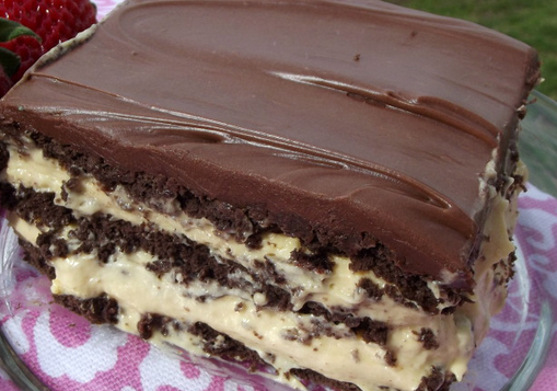 Spread frosting on top of the last layer of graham crackers all the way to the edge. Place in the fridge overnight so that the crackers become soft and moist.
