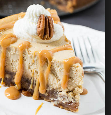 To serve you can either drizzle 1 cup of caramel syrup over entire cheesecake and cut (with extra syrup to serve along with) or cut first and drizzle individual pieces.