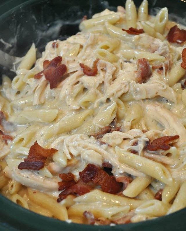 About 30 minutes before the chicken is done fry the bacon and cook the pasta.