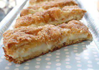 Unroll and spread 1 can crescent rolls on bottom of un-greased pan. Combine softened cream cheese, sugar, and vanilla. Spread mixture over crescent rolls. Unroll and spread remaining crescent rolls over mixture. Spread melted butter over the top and sprinkle with cinnamon and sugar. Bake at 350 degrees for 20-30 minutes.