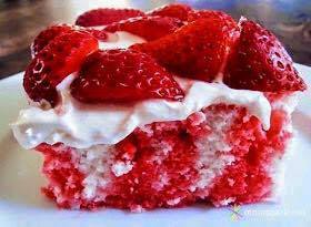 Let the cake cool for 20 minutes and “poke” the cake with a large fork until the entire surface of the cake is covered.