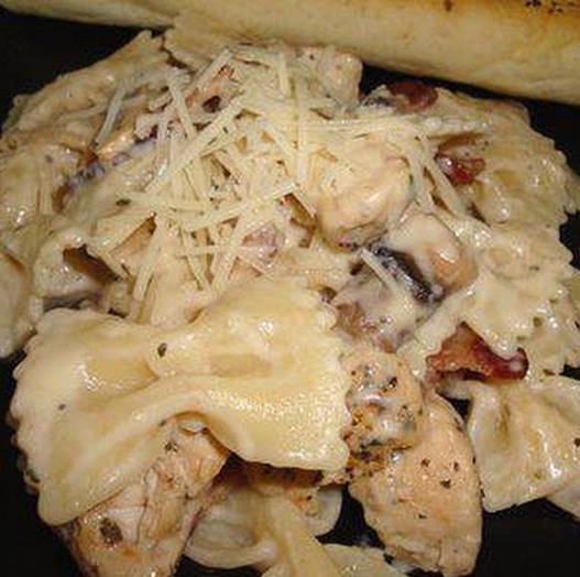 Cook on low for 6-8 hours. Cook bow tie pasta according to package.