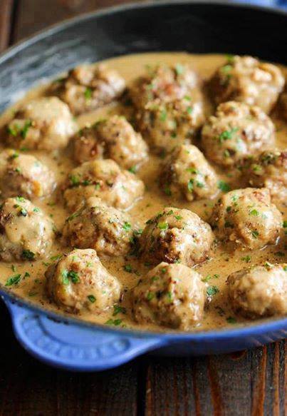 To make the gravy, melt butter in the skillet. Whisk in flour until lightly browned, about 1 minute. Gradually whisk in beef broth and cook, whisking constantly, until slightly thickened, about 1-2 minutes. Stir in sour cream; season with salt and pepper, to taste. Stir in meatballs and cook, stirring occasionally, until heated through and thickened, about 8-10 minutes.