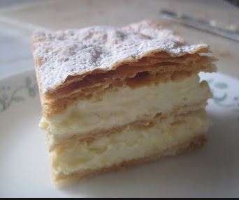 Cream: Mix egg yolks with sugar, until frothy. Add a cup of milk (out of the 6 1/3 cups), and corn starch, and mix well. Set the reminder of milk with vanilla sugar added, to boil, and when it comes to a boil, slowly mix in the yolk mixture, and stir constantly for a minute. Transfer to a large mixing bowl, and let cool completely. When cooled, add the whipped whipping cream, whipped with a stabilizer. Now put the whole sheet on the bottom of the pan, and spread the filling over it. Arrange the cut out sheet on top. Refrigerate for few hours before serving. Dust with powdered sugar. Instead of the top sheet of puff pastry, you can put whipped cream, and so on. Suit yourself, and enjoy : )